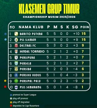 Pimpinan puncak Grup Timur pada pekan kelima Pegadaian Championship ini masih dihuni Barito Putera Banjarmasin. Tapi, Laskar Antasari tak aman. Terus ditempel ketat PSS Sleman dengan poin sama sama 15. Agregat gol keduanya pun terpaut +1 gol saja. Barito (+10) dan PSS (+9).