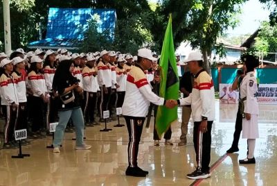 Pelepasannya dilakukan oleh Wabub Suriani di Halaman GOS (Gedung Olahraga dan Seni) Aluh Idut, Kandangan, Sabtu pagi, 18 Oktober 2025. Prosesi pelepasannya khidmad dan semangat. Ditandai penyerahan bendera kontingen dari Wabup kepada Ketua Kontingen, Efran.