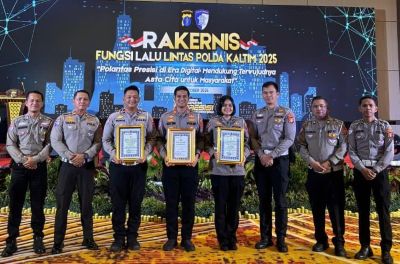 Penghargaan tersebut diserahkan dalam Rapat Kerja Teknis (Rakernis) fungsi lalu lintas Polda Kaltim tahun 2025 yang hadiri Wakapolda Kaltim, M. Sabilul Alif, PJU Polda Kaltim, BPTD Provinsi Kaltim, PT Jasa Raharja Kaltim, BBPJN Provinsi Kaltim di Balikpapan, Rabu (8/10/2025).