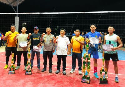 Kapolres HST menutup resmi turnamen bola voli antarklub ini. AKBP Jupri bersama Bupati Rizal dan Yajid menyerahkan piala, sertifikat dan uang pembinaan secara bergantian kepada para sang jawara