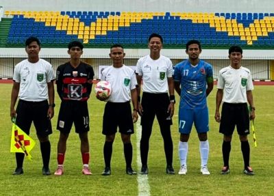 Sesaat hendak kick-off Perseka (hitam merah) kontra Barabai FC (biru biru)
